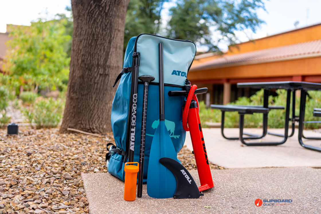 Atoll’s accessory kit has everything you need to get paddling except for a life jacket. The three piece paddle is lightweight and easy to use with length markings on the handle, and it provides just the right amount of power and flex for efficient all day paddling. We would like to see an upgrade to the pump (either a dual chamber or electric pump) and it would be nice to see a few more color options for the board/kit.
